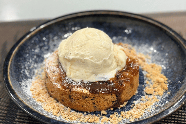 Servi avec une boule de glace vanille.